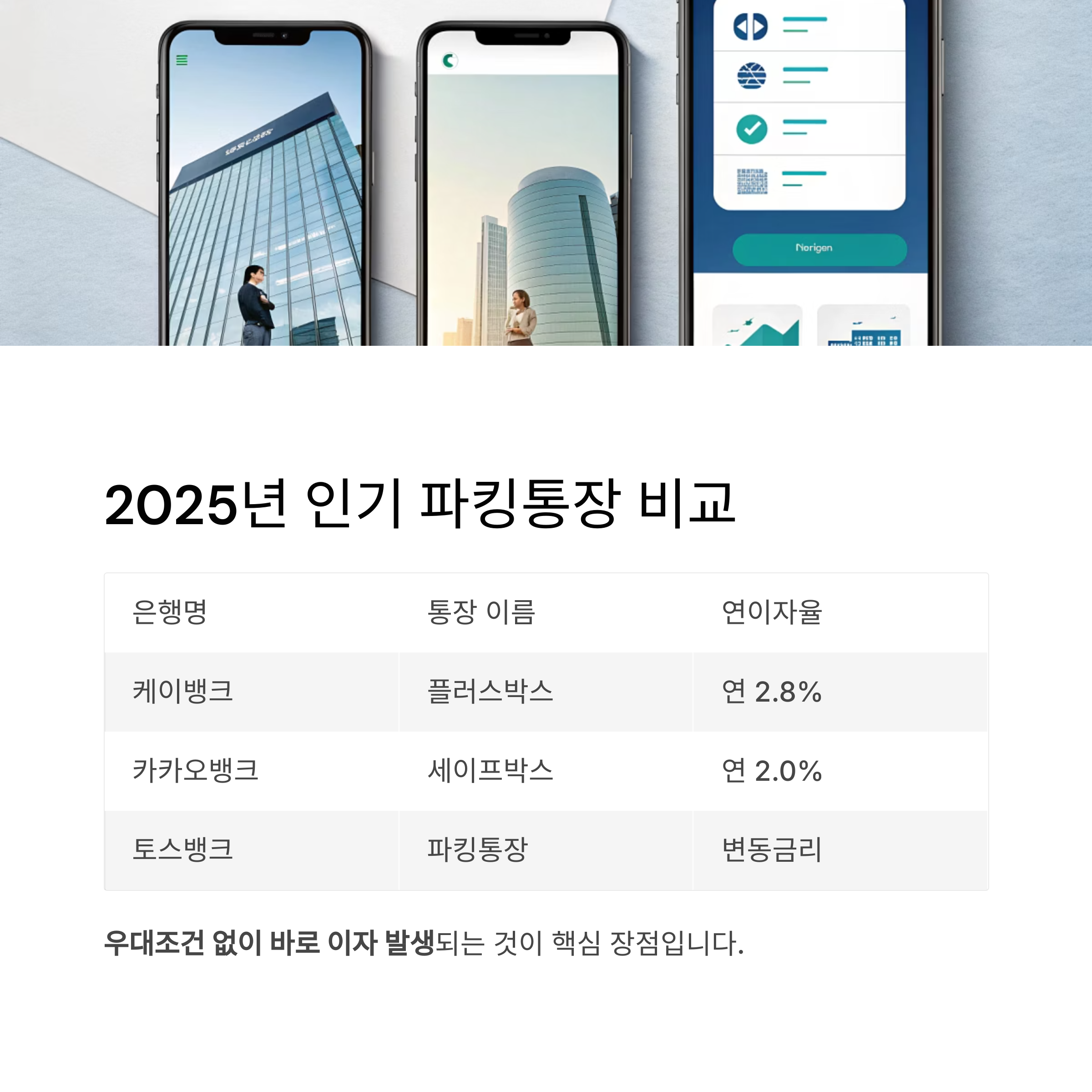 케이뱅크, 카카오뱅크, 토스뱅크 파킹통장 비교