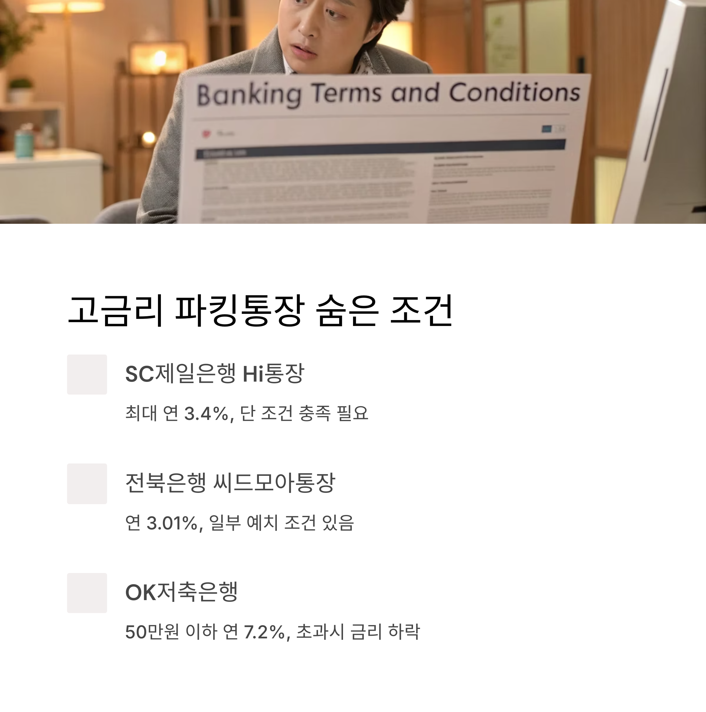 "고금리만 보고 가입하면 낭패, 조건 확인은 필수입니다."
