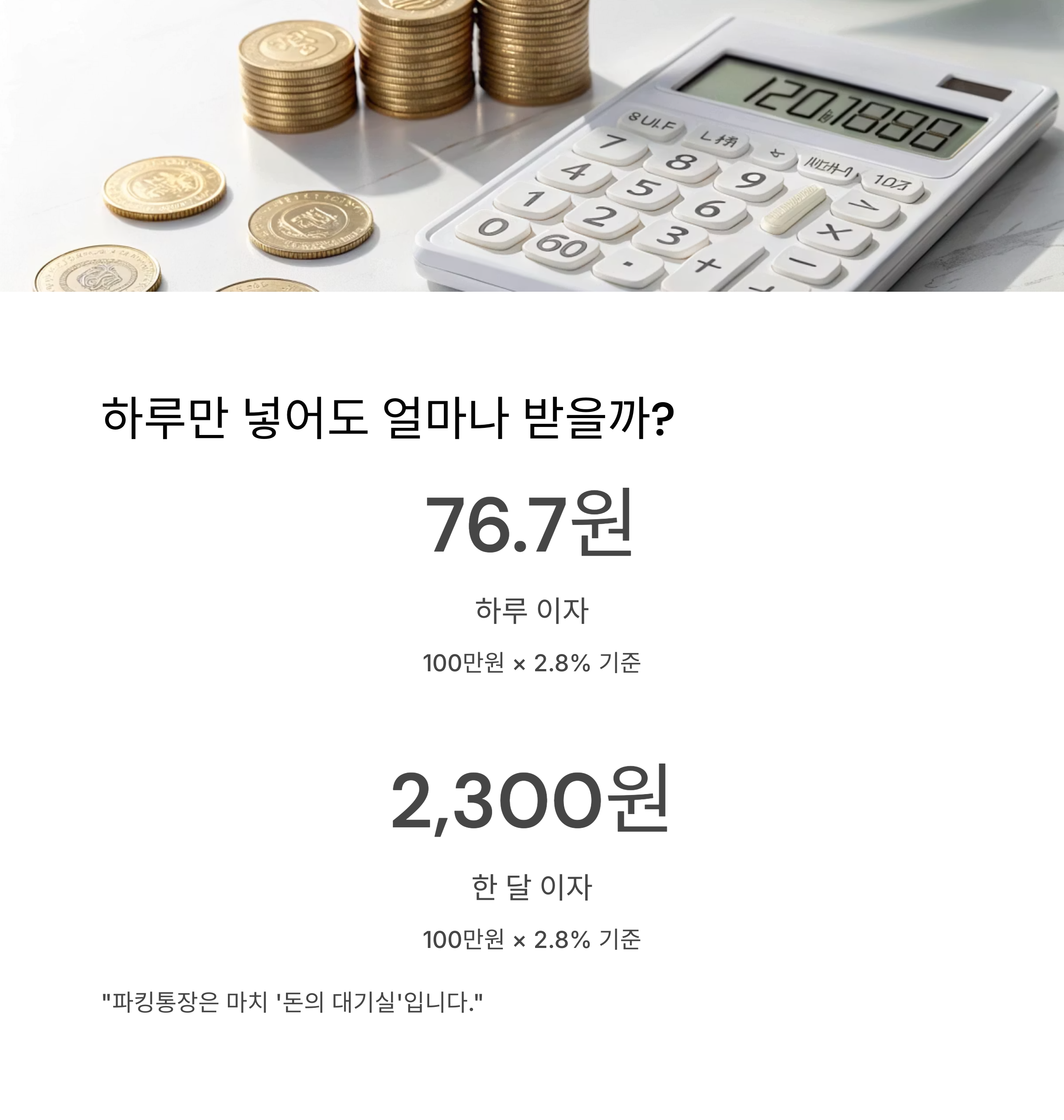 - 연 2.8% → 하루 이자 약 76.7원