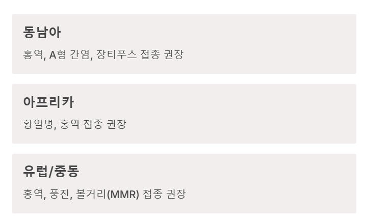 • 유럽/중동: 홍역, 풍진, 볼거리(MMR)
