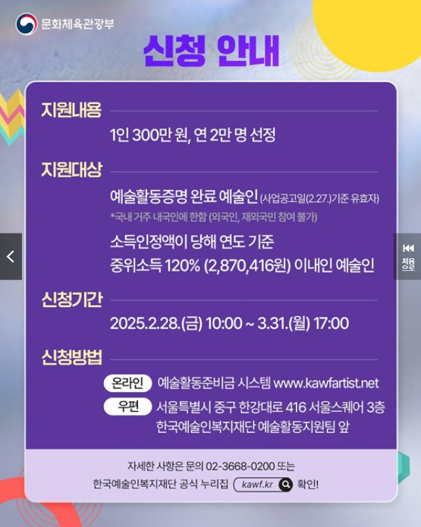 📌 예술활동증명을 완료하지 않았다면, 미리 신청해 두세요!