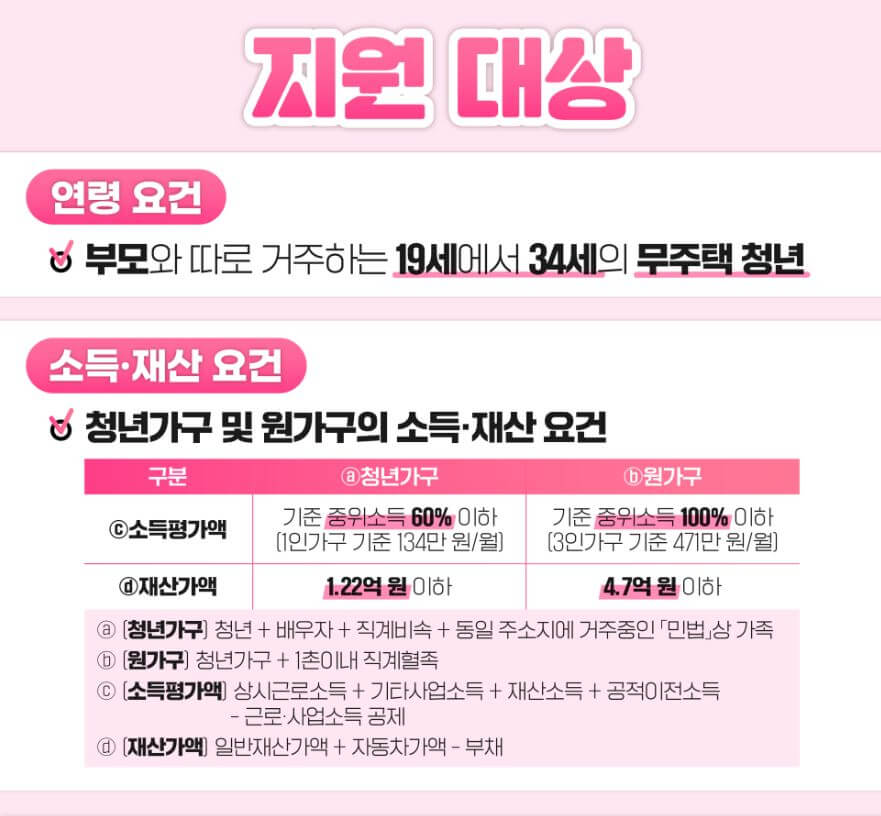 (청년가구) 기준 중위소득 60% 이하 및 재산가액 1.22억원 이하