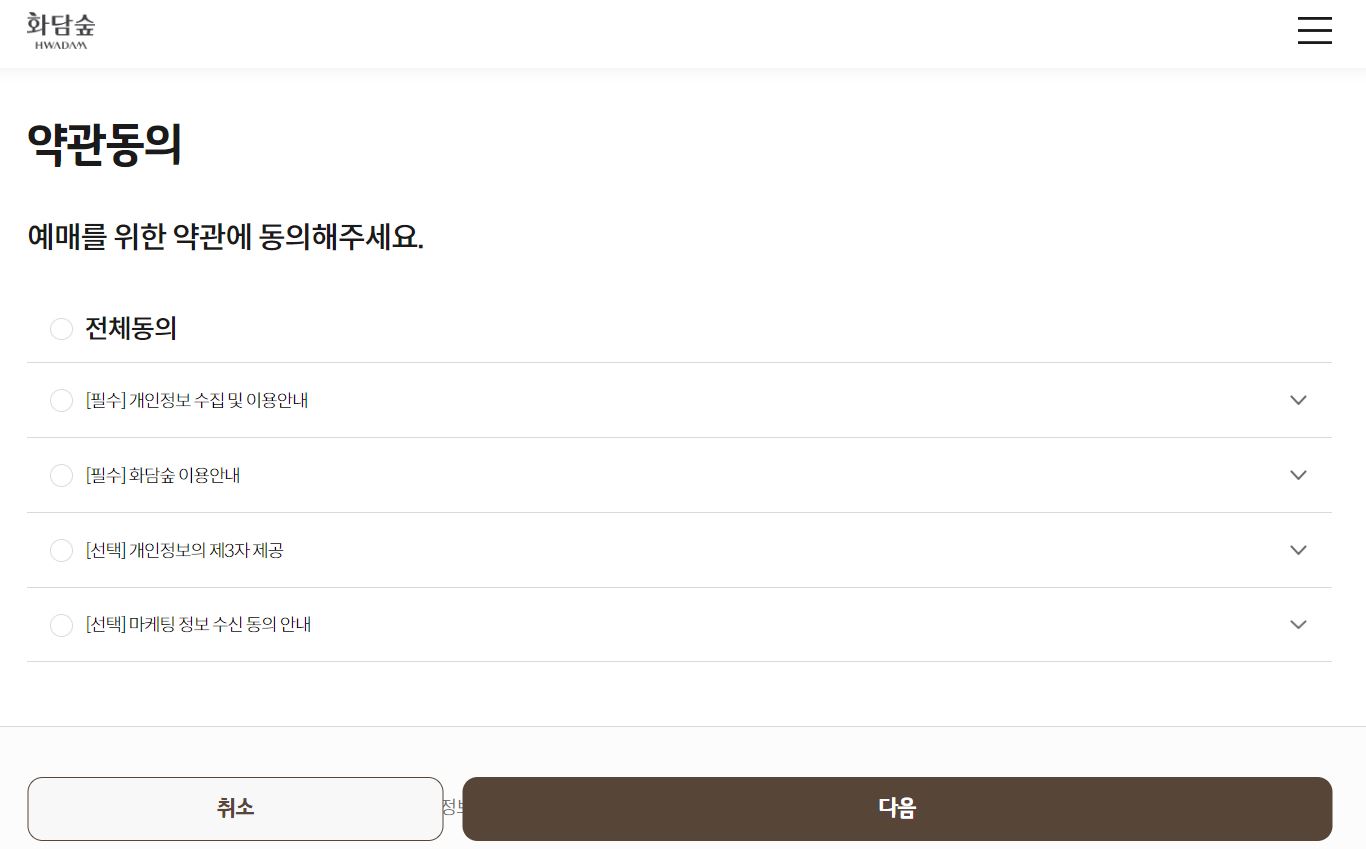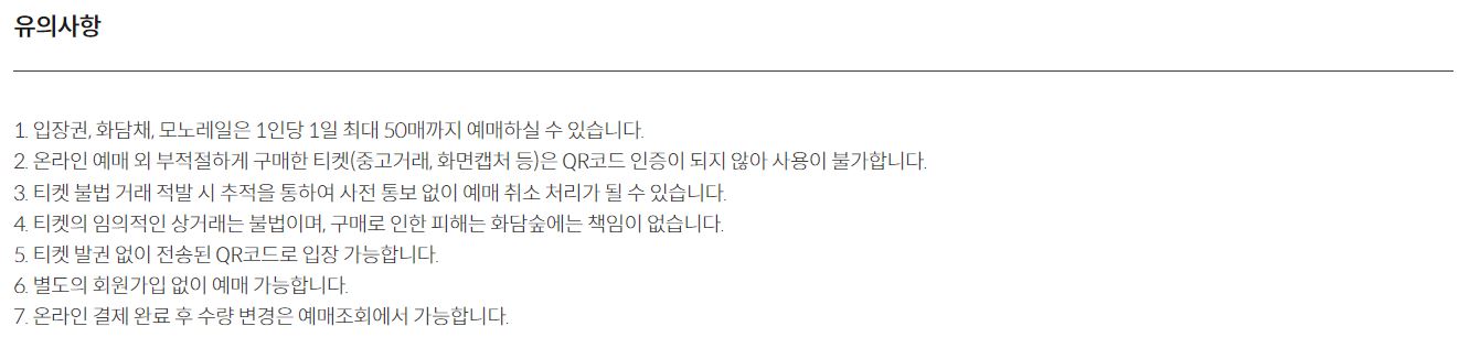 - 화담숲은 티켓 종류에 따라 취소 및 환불 기준이 조금씩 다르기 때문에, 방문 일정이 변경되실 경우 미리 취소 규정 확인 후 환불 진행하는 것이 좋습니다.