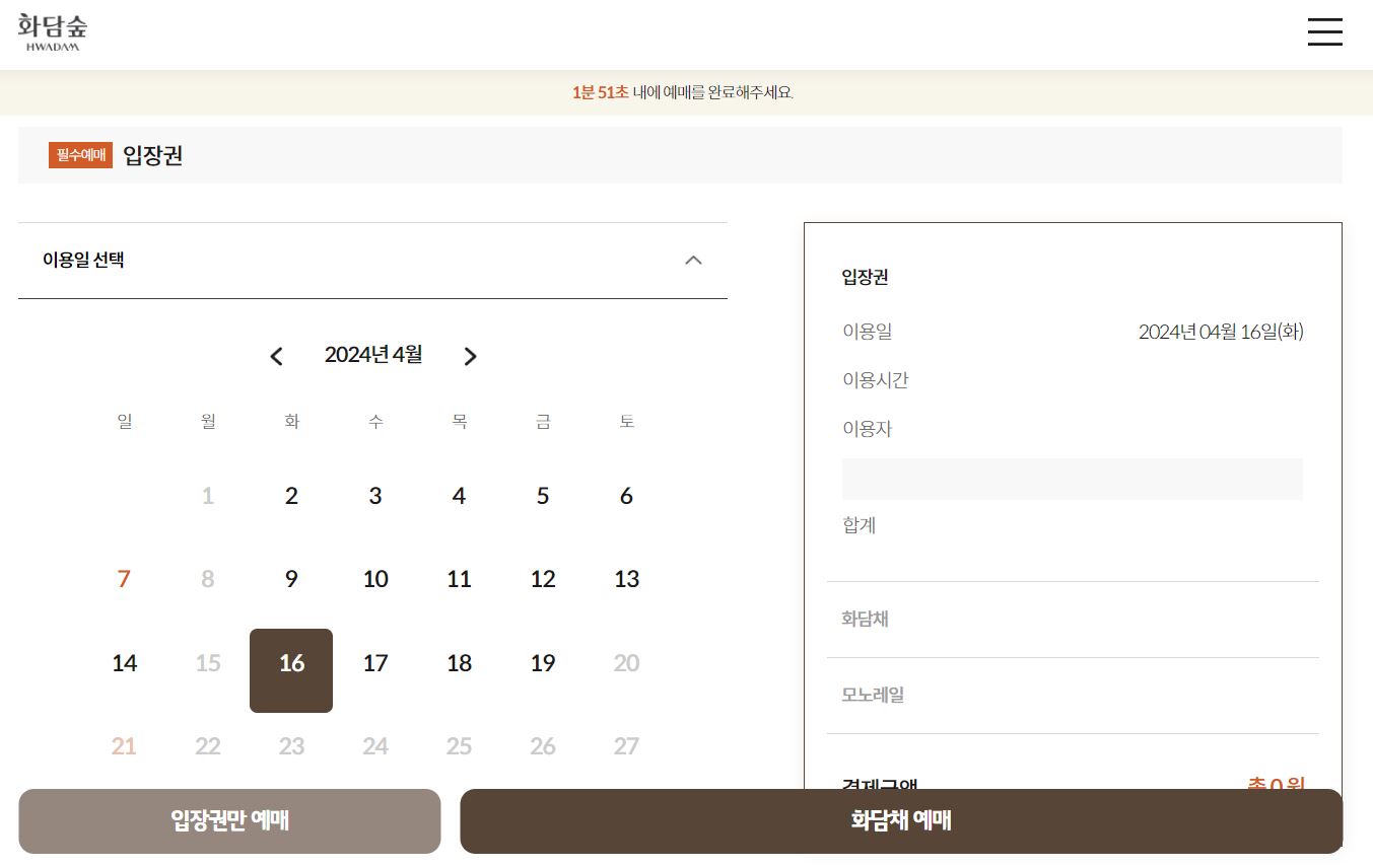 * 현재 4/14 까지 모두 매진이 되었고 4/16부터 신청 가능하니 예매하실 때 참고하셔서 이용하시면 되겠습니다.