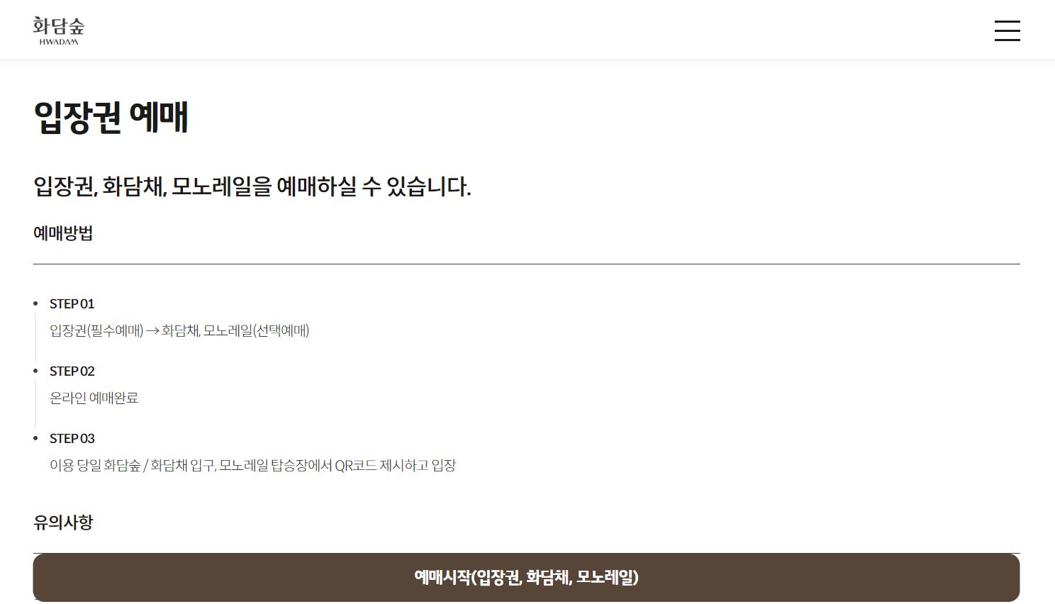 ※ 화담숲 홈페이지를 통해 화담숲/ 화담채 및 모노레일 탑승권을 구매하신 후 방문해주세요.