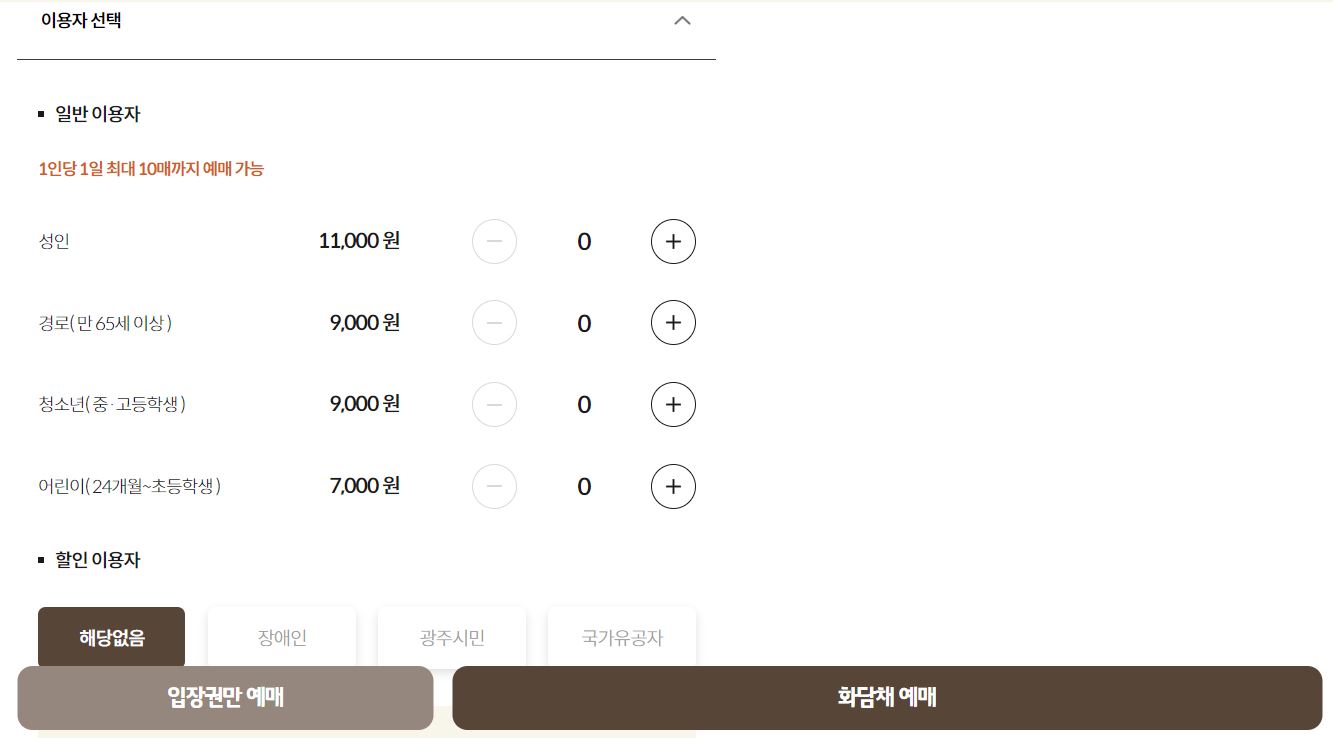해당 화면에서 입장권만 예매할지, 화담채까지 예매할지 선택할 수 있는데요. 화담채는 화담숲의 미디어아트 전시관입니다. 3~4월에만 개관 기념 50% 할인되어 1인당 2500원이라는 저렴한 금액으로 이용할 수 있다고 하니 가능하다면 함께 이용해보는 것도 괜찮을것 같습니다.^^