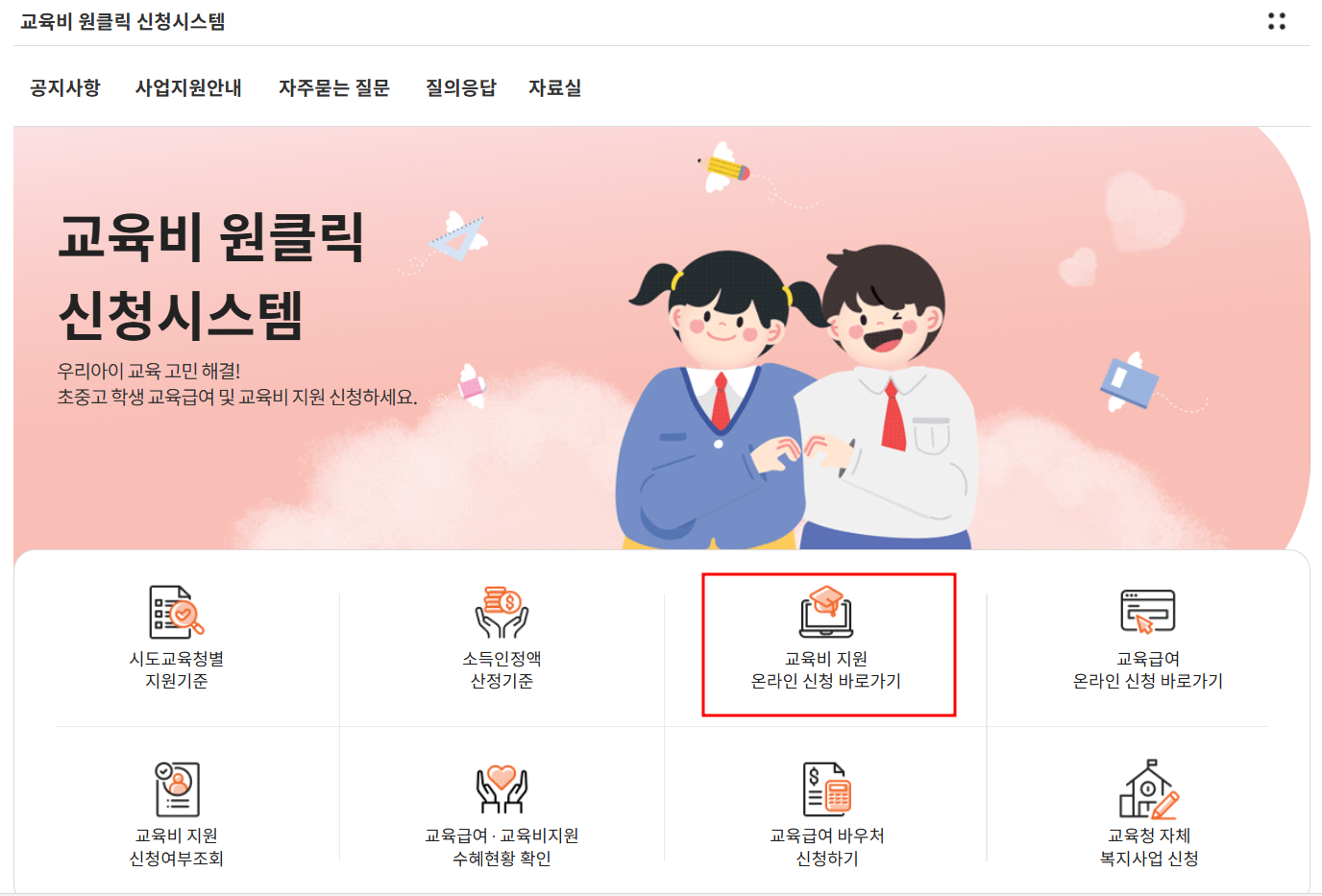- 교육비 원클릭 신청 시스템: https://oneclick.neis.go.kr