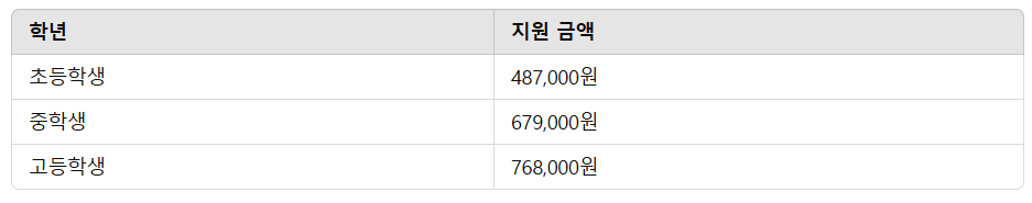* 지원 금액은 학용품, 교재, 학원비 등 교육 관련 비용으로 사용 가능합니다.