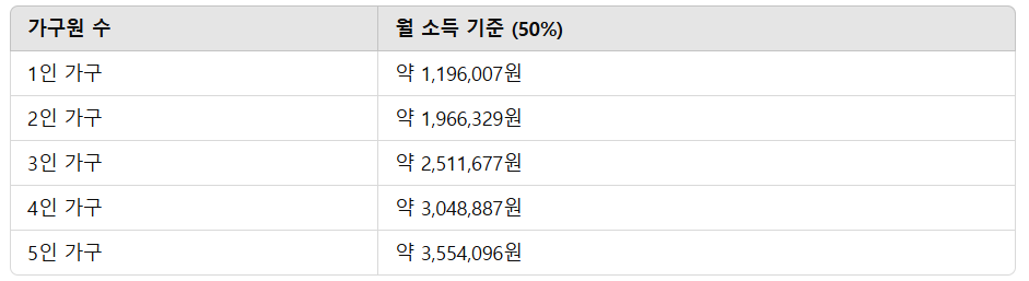 💰 2025년 기준 중위소득 50% 이하 월 소득 기준