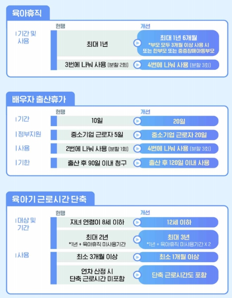 특히 부모가 함께 육아휴직을 사용할 경우 혜택이 늘어나는 점이 눈에 띄는 변화입니다.