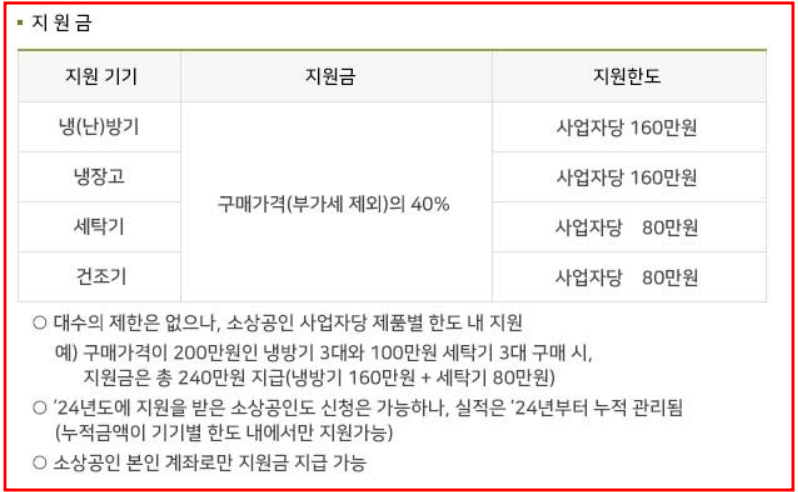 - 냉난방기: 최대 160만 원 지원