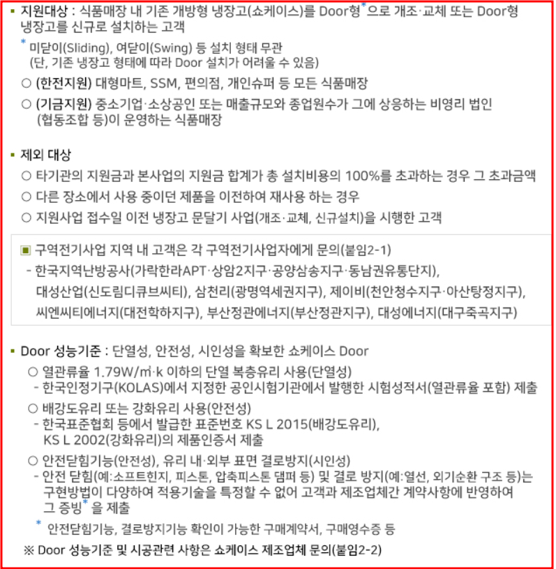 기존 개방형 냉장고를 도어형으로 개조하거나 도어형 냉장고를 신규 구입할 경우 지원금을 받을 수 있습니다.