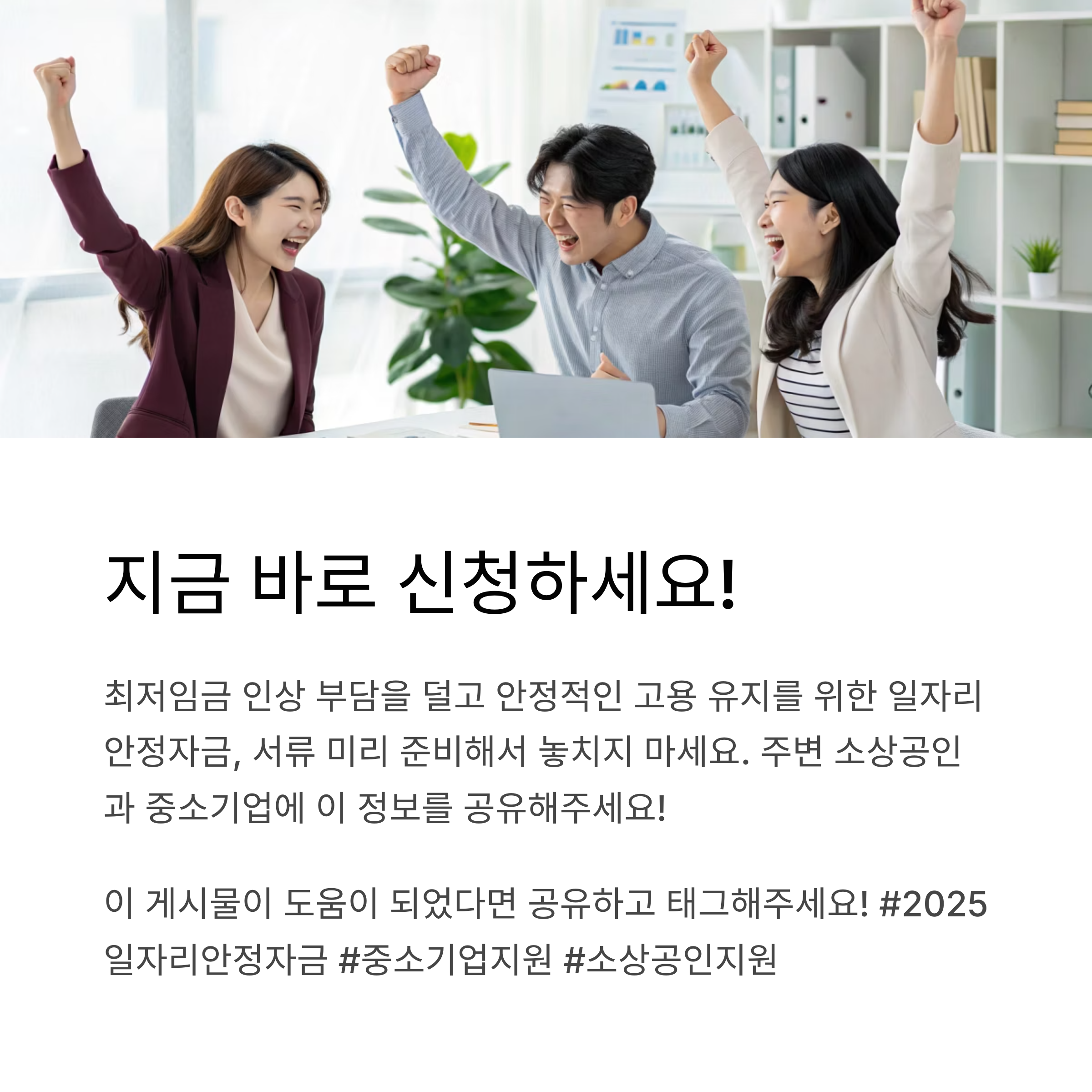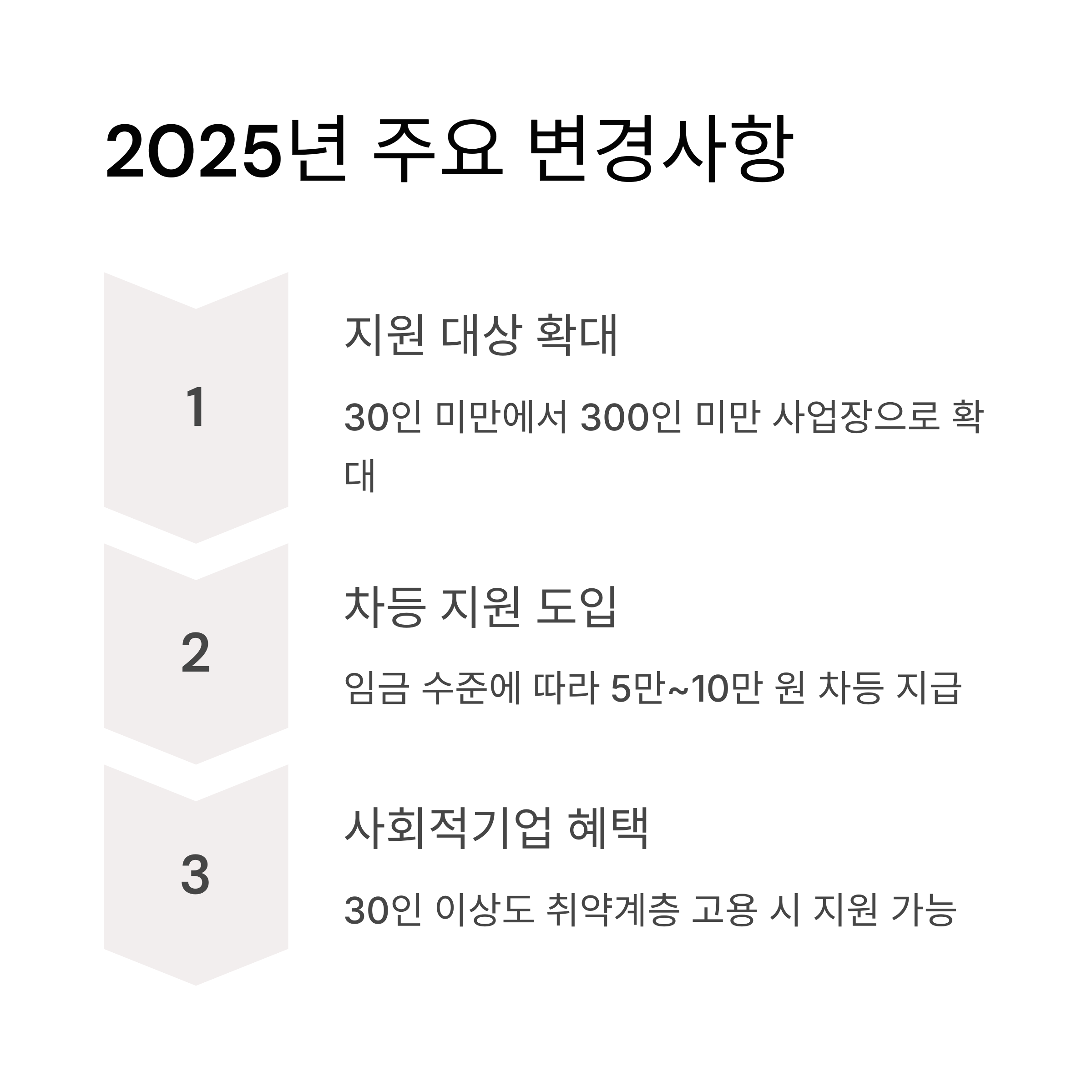 올해부터 지원 대상이 대폭 확대되고, 지원금도 차등 지급되면서 더욱 실질적인 혜택을 받을 수 있게 되었습니다. 내 사업장이 지원 대상인지, 어떤 혜택을 받을 수 있는지 지금 바로 확인해보세요!