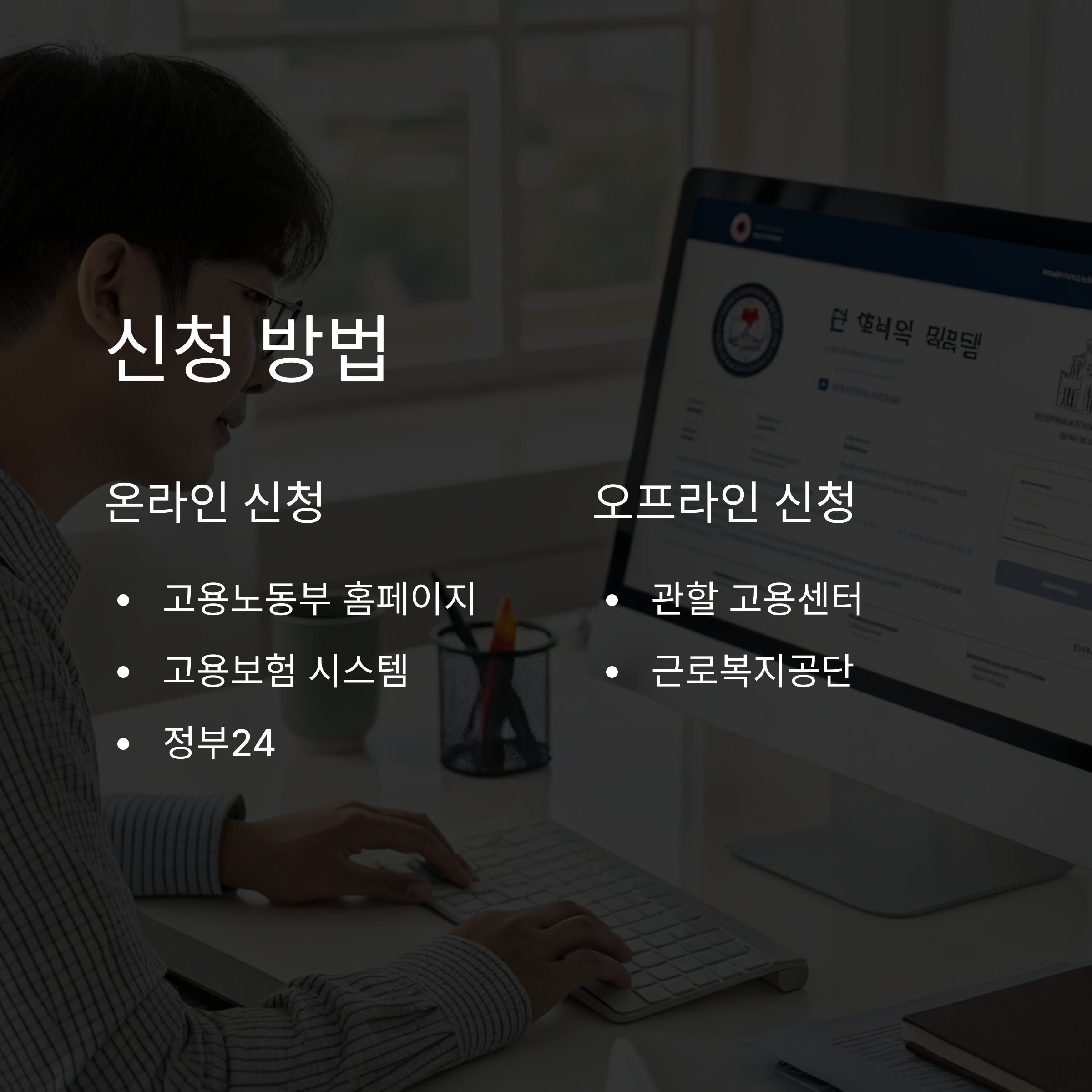 • 온라인 신청: 고용노동부 홈페이지, 고용보험 시스템, 정부24
