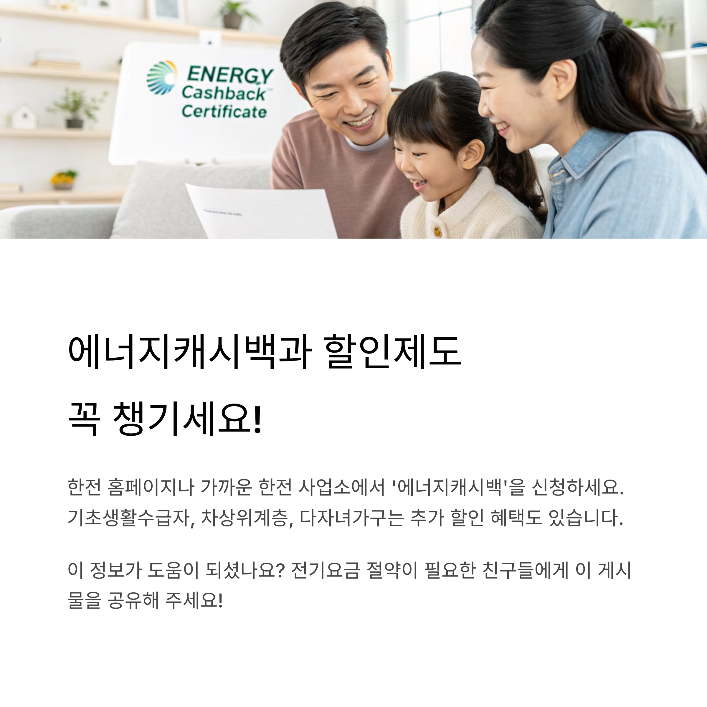 "자격 요건이 된다면 반드시 신청해 전기요금 부담을 줄이세요."