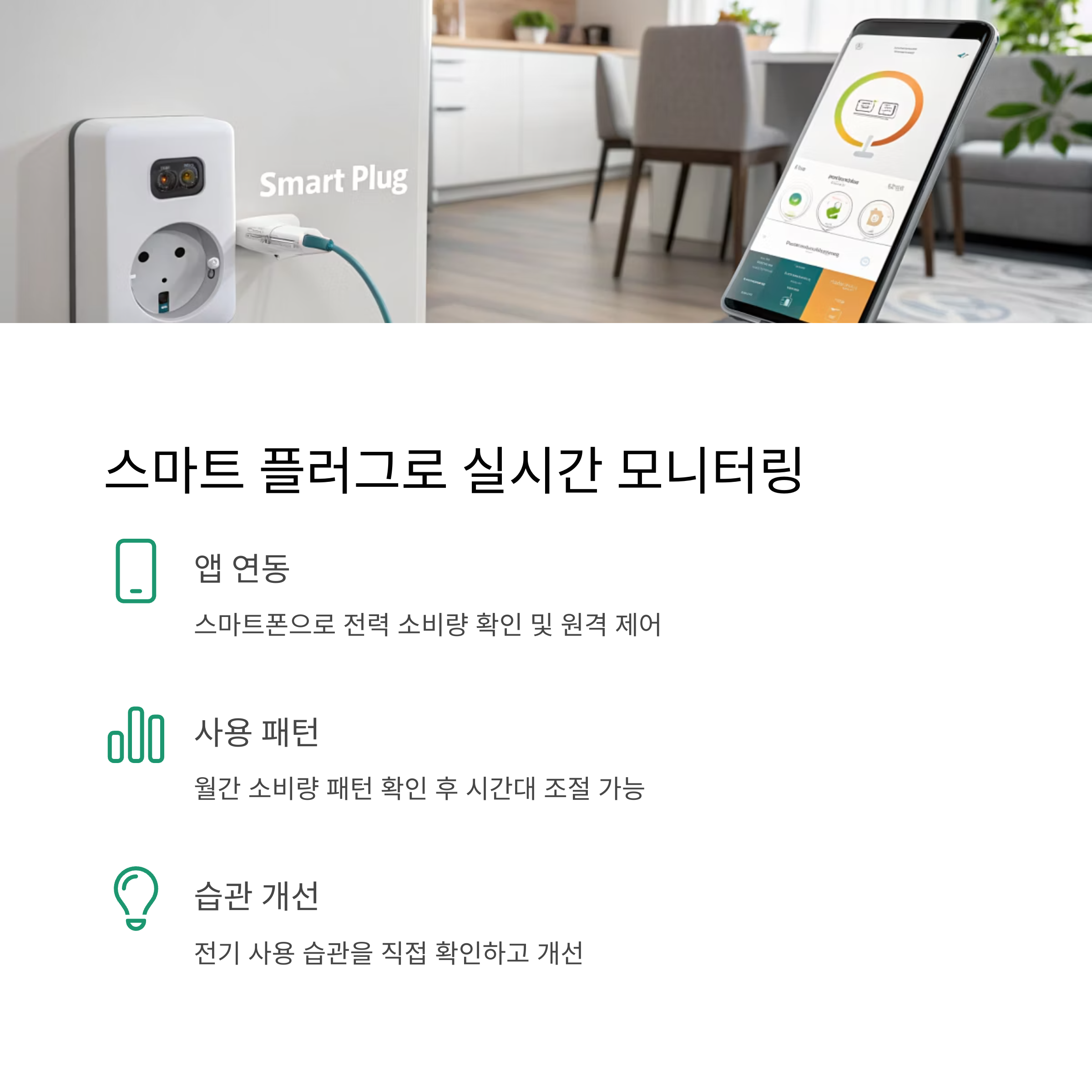 스마트 플러그는 연결된 기기의 전력 소비량을 실시간으로 보여주며,