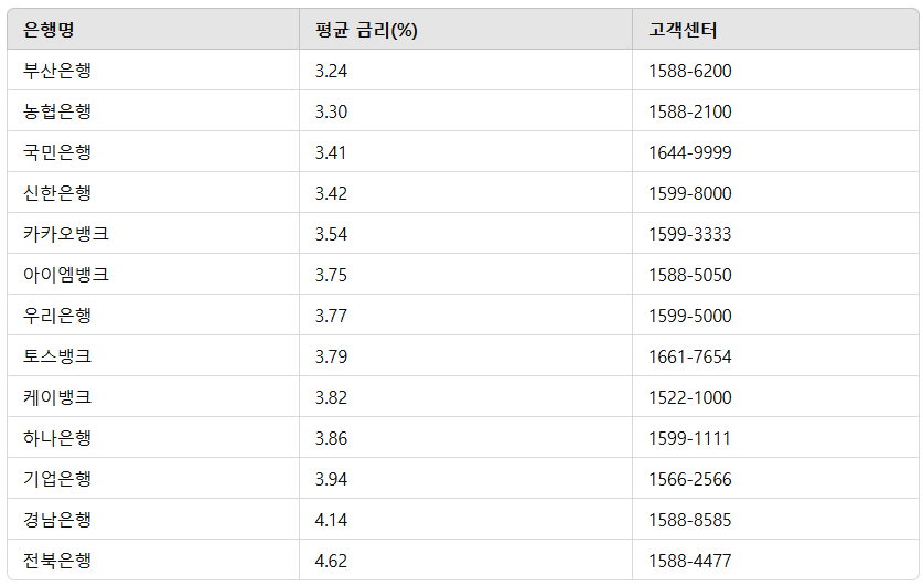 ✔ 1금융권: 신한·국민·하나·우리·농협 등 (금리가 상대적으로 낮음)