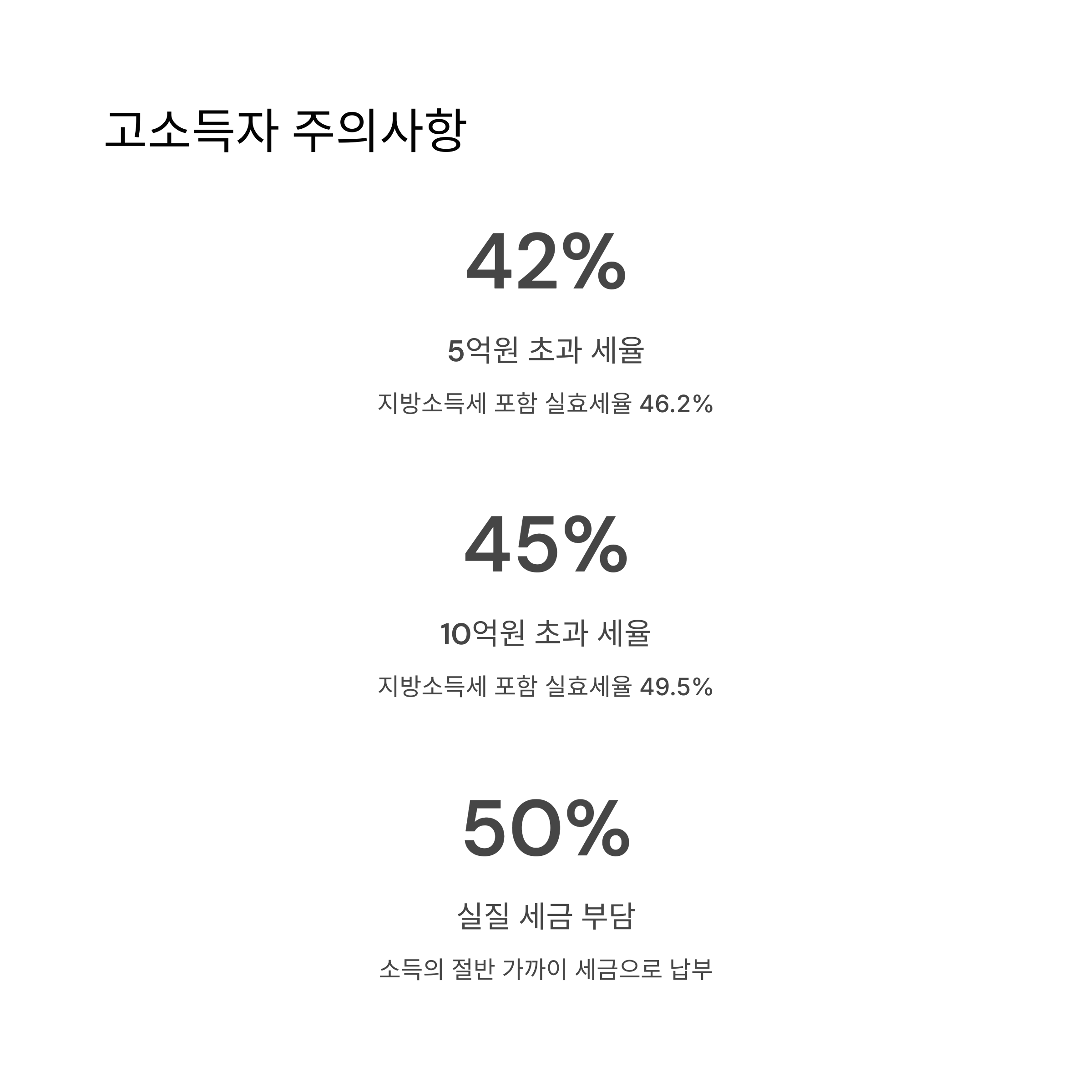 고소득자 주의: 5억 원 초과 시 세율은 무려 42%!