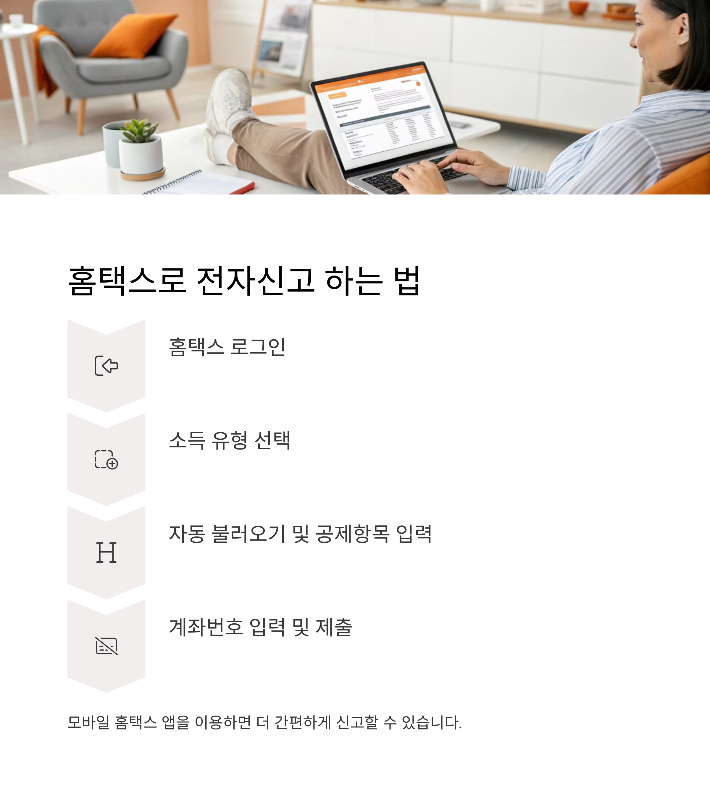 "모바일 홈택스 앱을 이용하면 더 간편하게 신고할 수 있습니다."