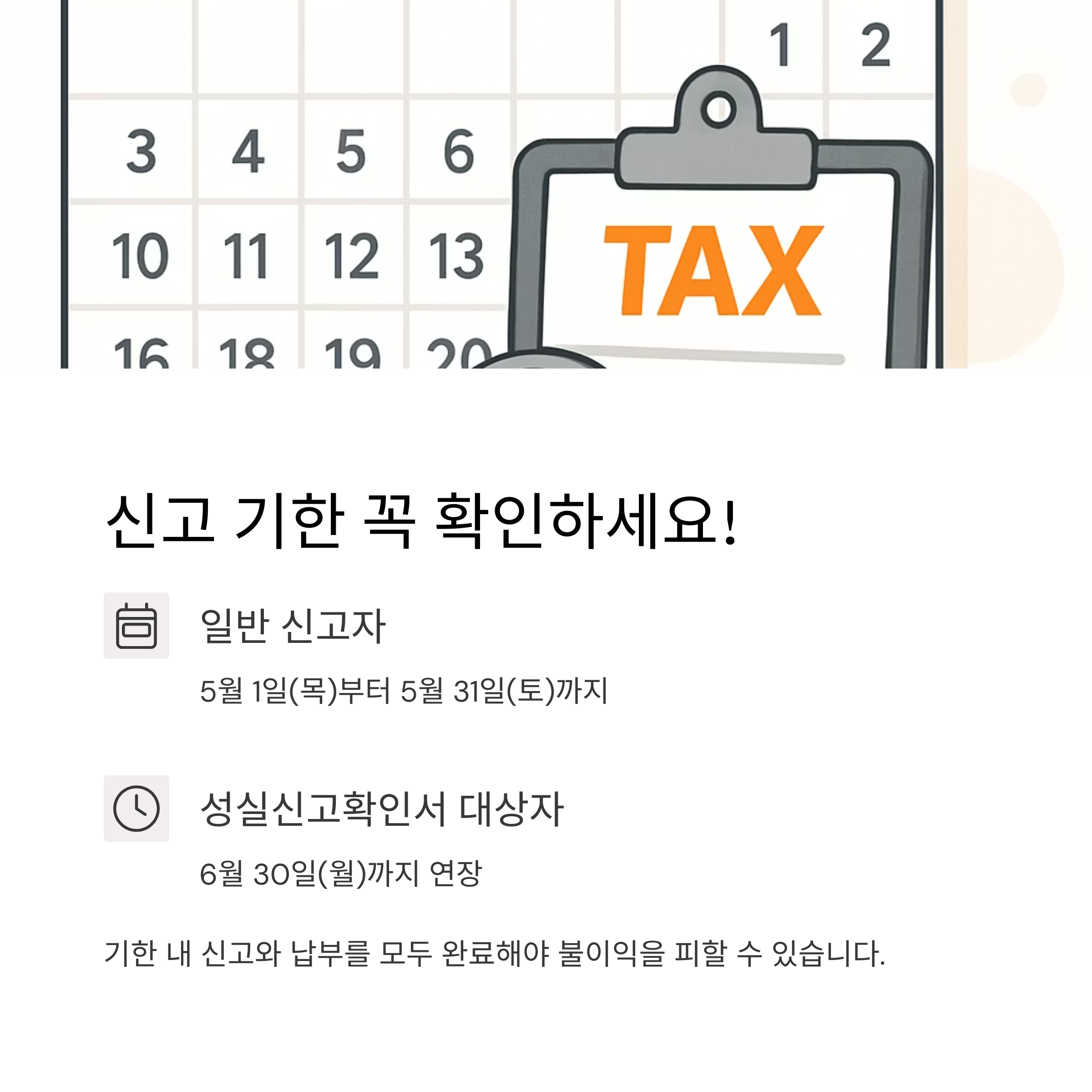 이 기간 안에 반드시 신고와 납부를 모두 완료해야 불이익을 피할 수 있습니다.