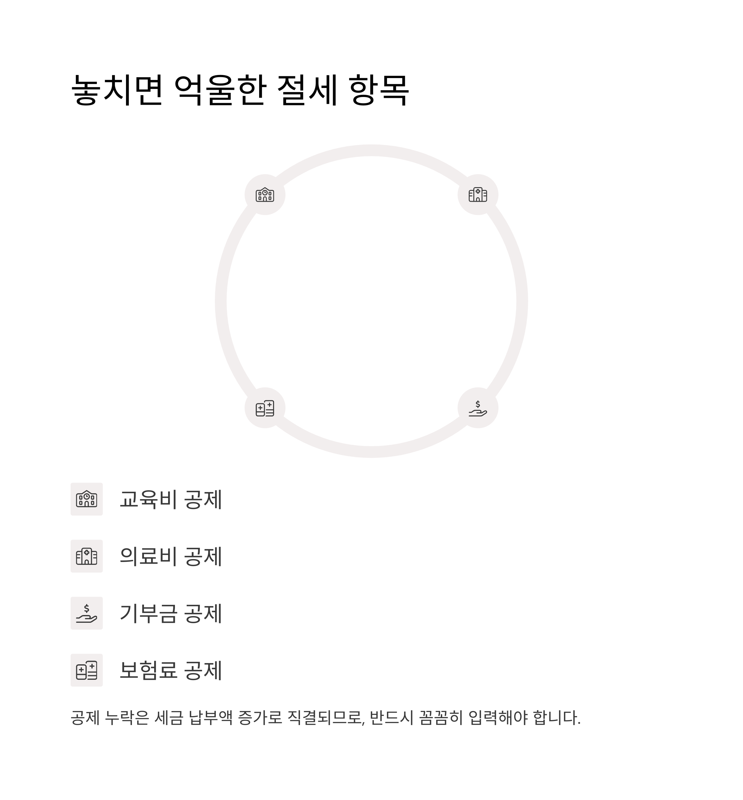 공제 누락은 세금 납부액 증가로 직결되므로, 반드시 꼼꼼히 입력해야 합니다.