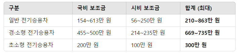 1️⃣ 전기승용차 보조금 (최대 863만 원 지원)