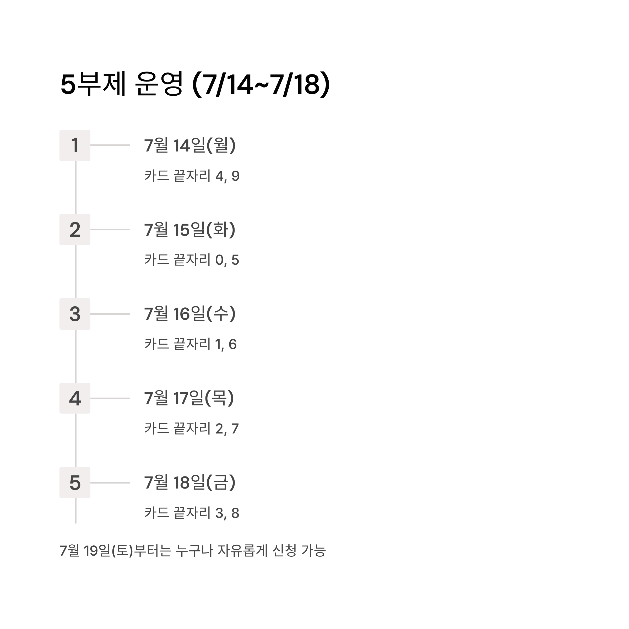 | 날짜 | 신청 대상 (카드 끝자리) |