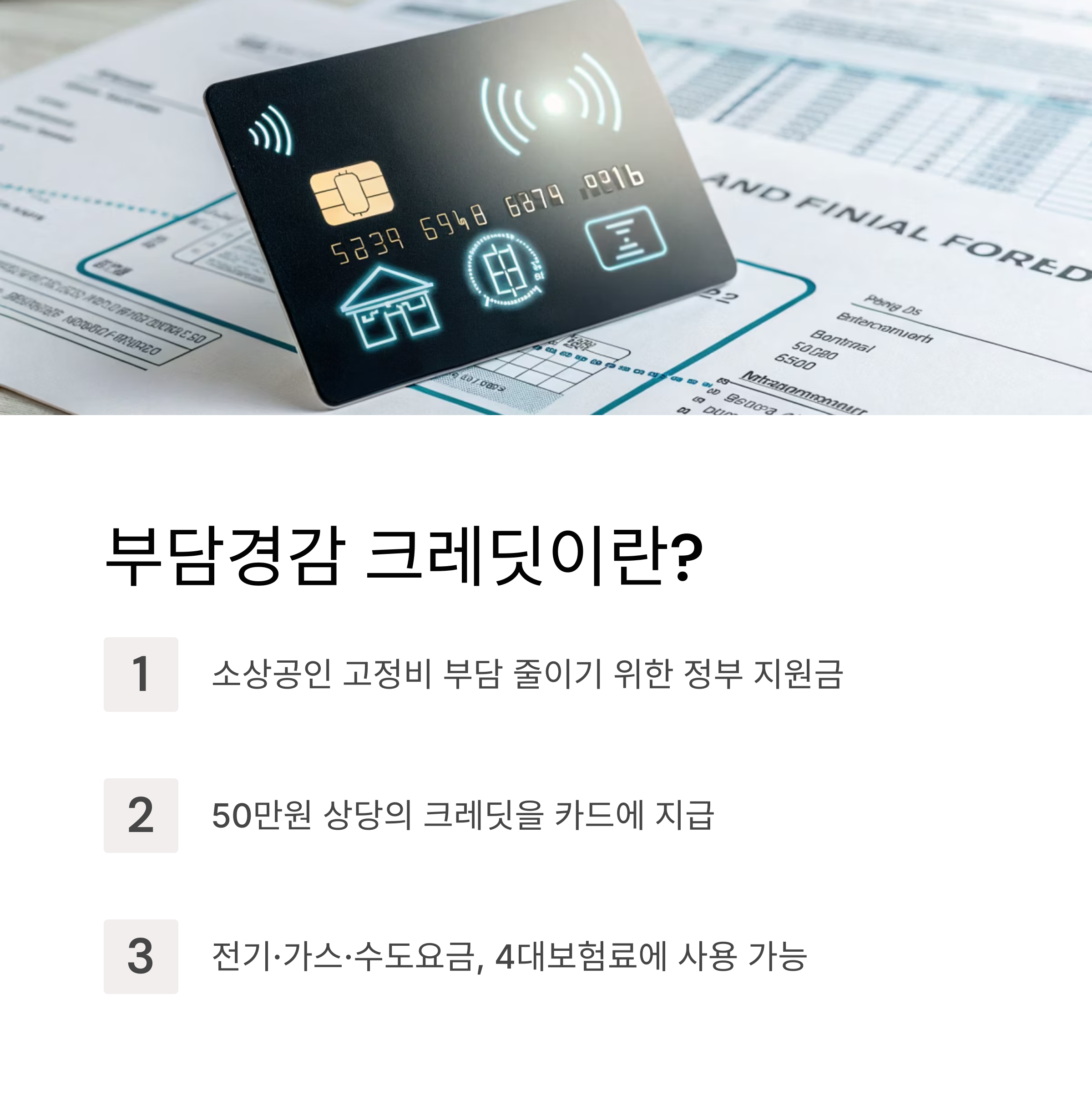 이런 상황을 고려해 정부는 2025년 7월부터 소상공인에게 50만 원을 지원하는 ‘부담경감 크레딧’ 제도를 시행한다고 밝혔는데요. 이 크레딧은 전기·가스·수도요금과 4대 보험료 납부에 사용할 수 있는 카드형 지원금으로, 조건만 충족하면 누구나 신청 가능하다는 점에서 많은 관심을 받고 있습니다.