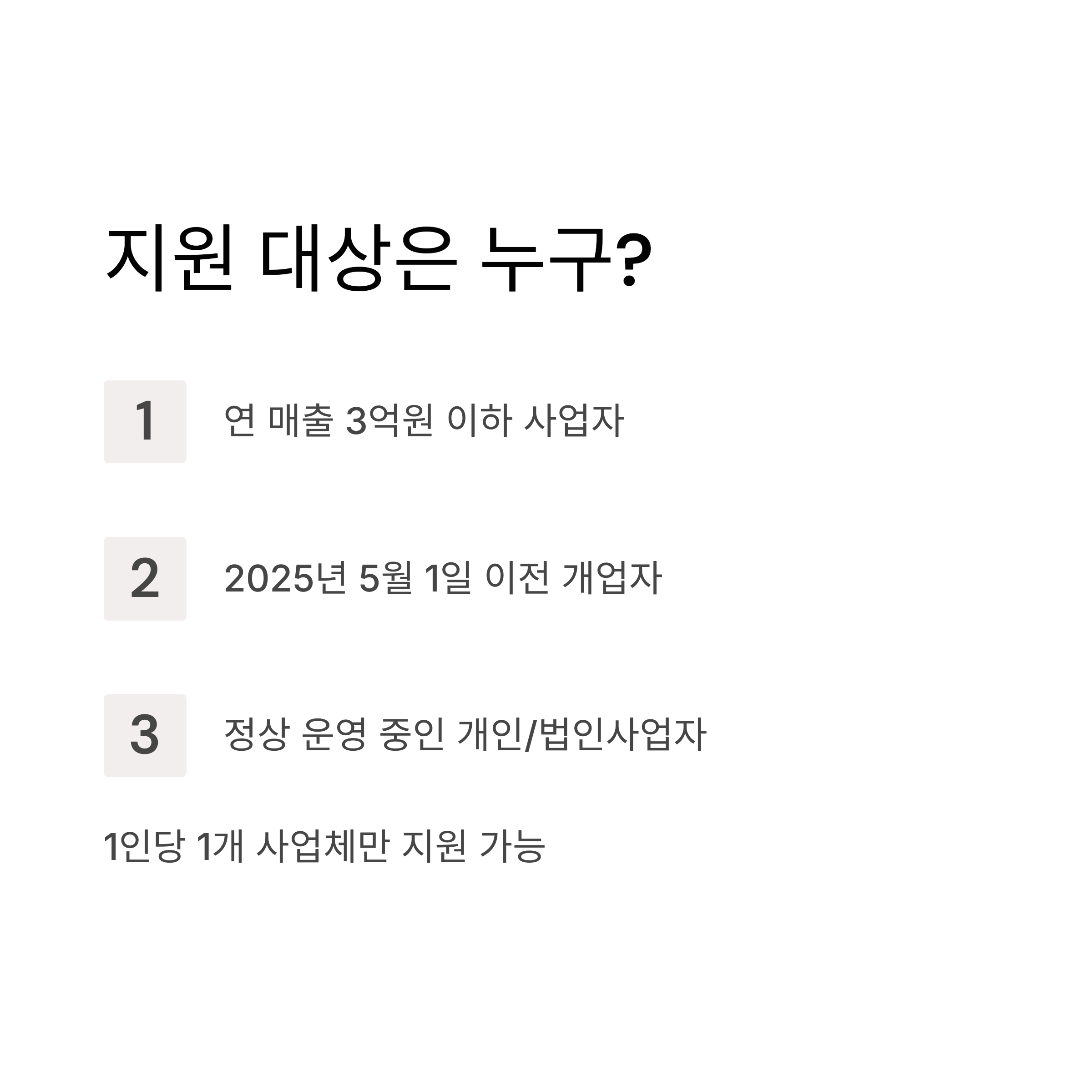 | 지원 범위 | 1인당 1개 사업체만 지원 가능 |