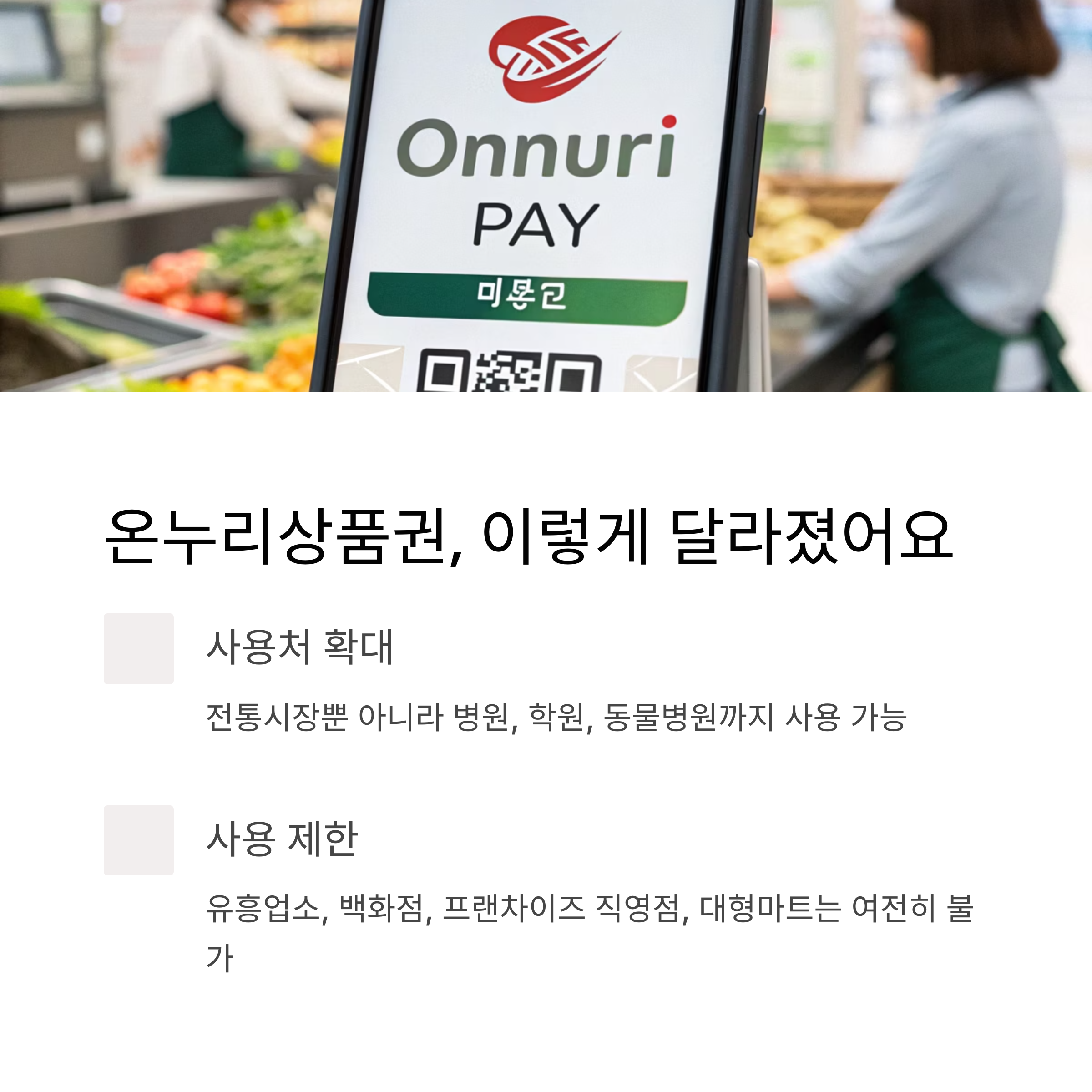 2025년 5월 기준으로 온누리상품권의 사용 가능처가 대폭 확대되었습니다.