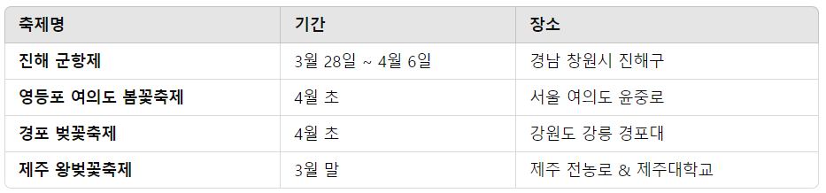 🌸 주요 벚꽃 축제 일정