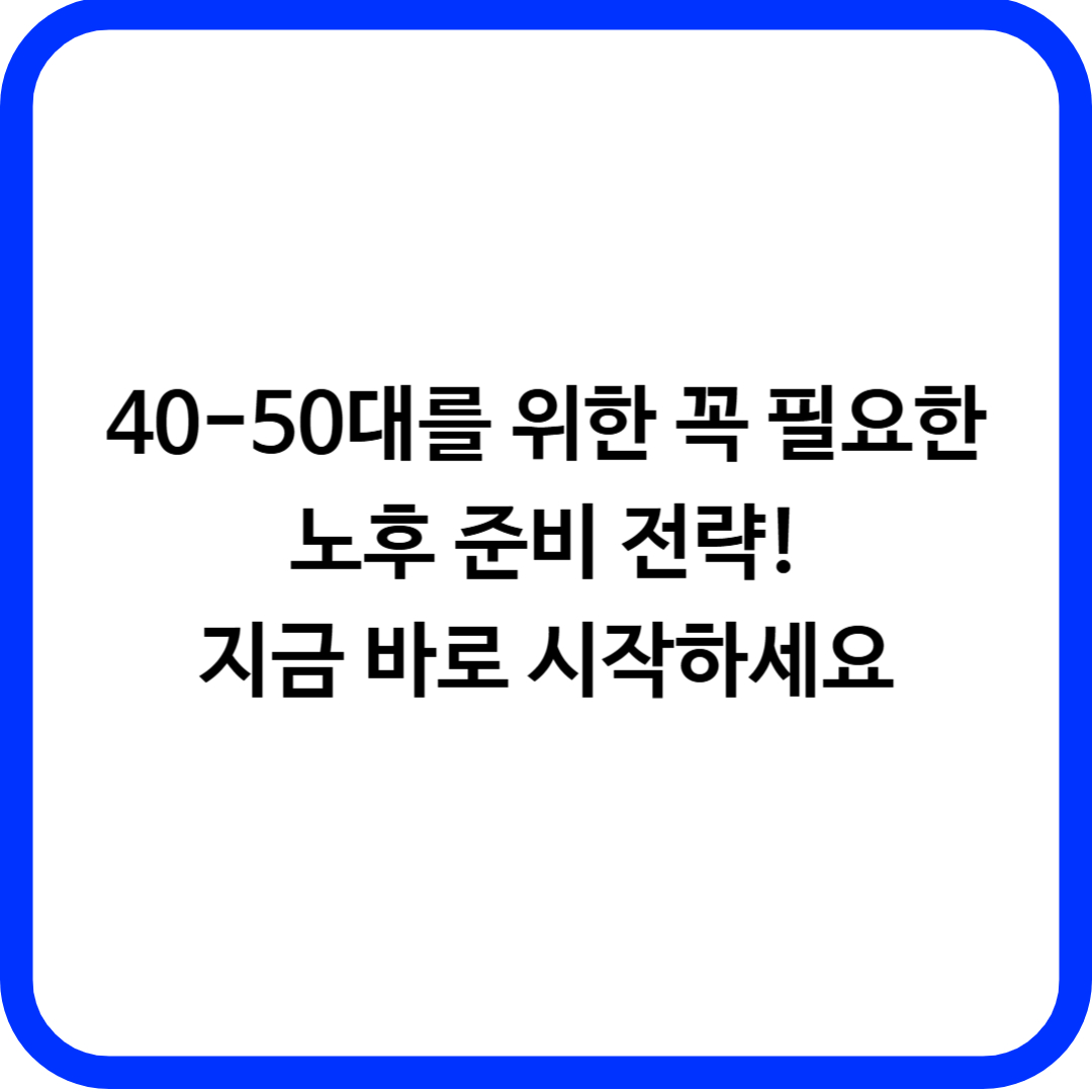 40~50대는 바쁜 시기지만, 노후 준비는 절대 미루면 안 되는 중요한 과제입니다. 오늘부터라도 연금 계좌를 만들고, 투자 공부를 시작하고, 건강을 챙기며 하나하나 실천해 보세요. 미래의 나 자신에게 가장 큰 선물이 될 거예요. 😊