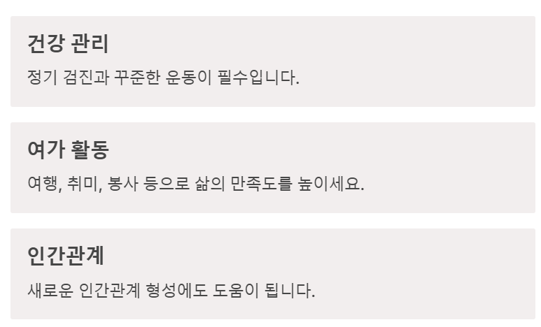 - 여행, 취미 활동, 봉사 등으로 삶의 만족도 높이기