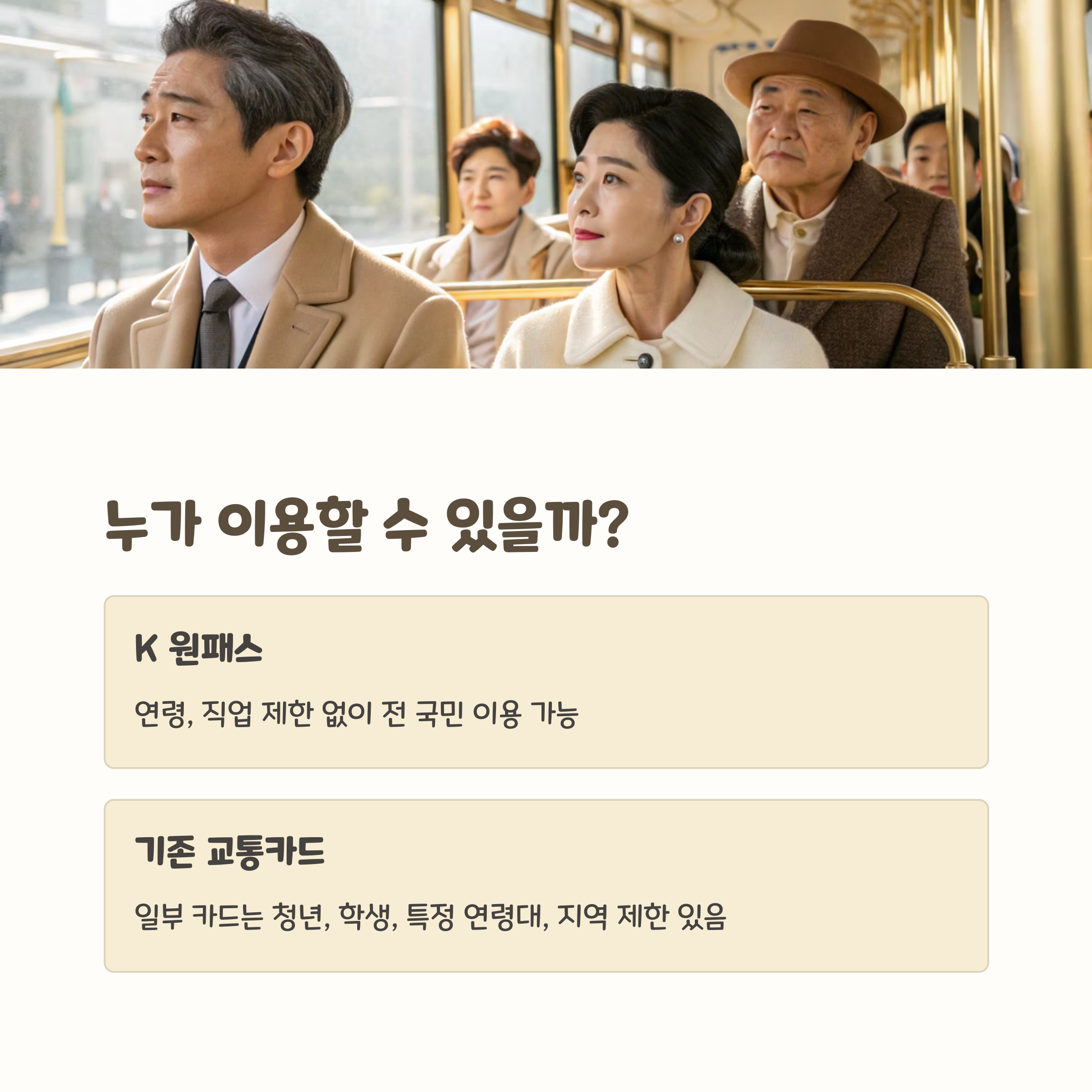 "나이, 지역 구분 없이 혜택을 받고 싶다면 K 원패스가 훨씬 자유롭습니다 🌍"