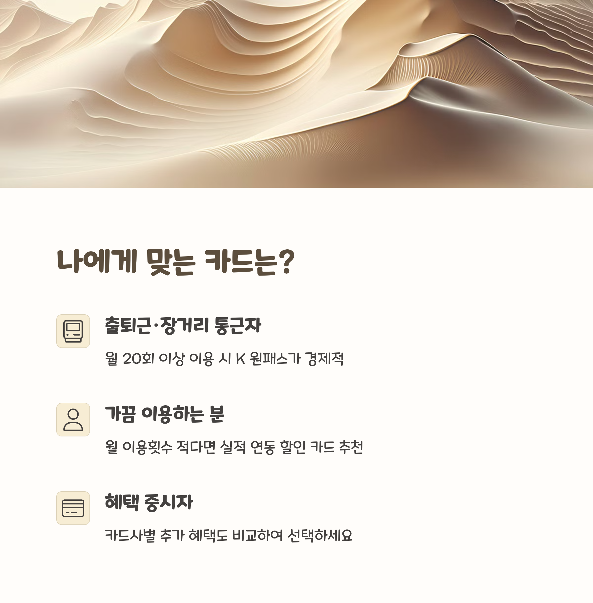 "교통비 절약? 무조건 하나만 고를 필요 없습니다. 나에게 맞는 최적 조합을 찾는 게 정답입니다 ✅"