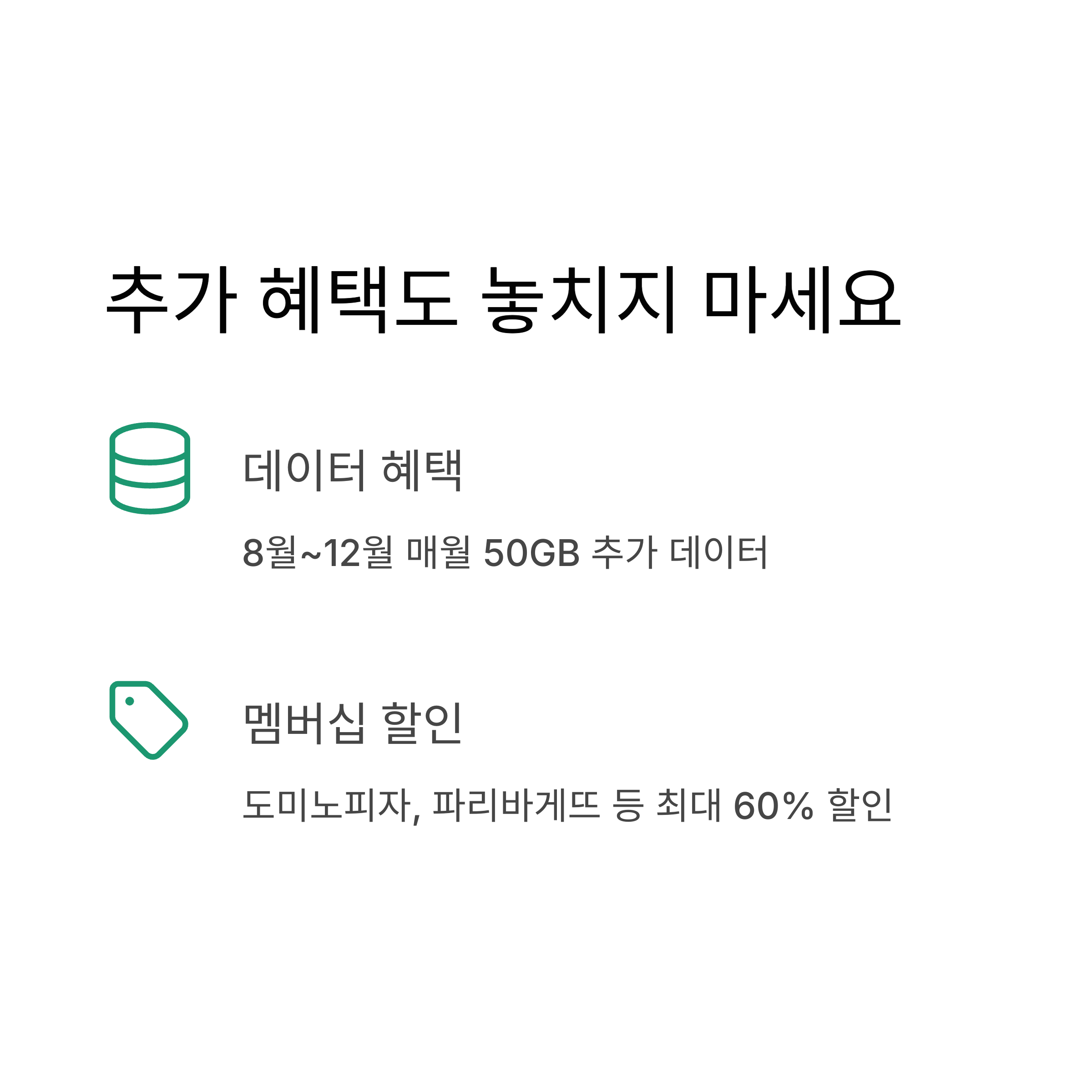 - 8월~12월 매월 50GB 추가 데이터 제공