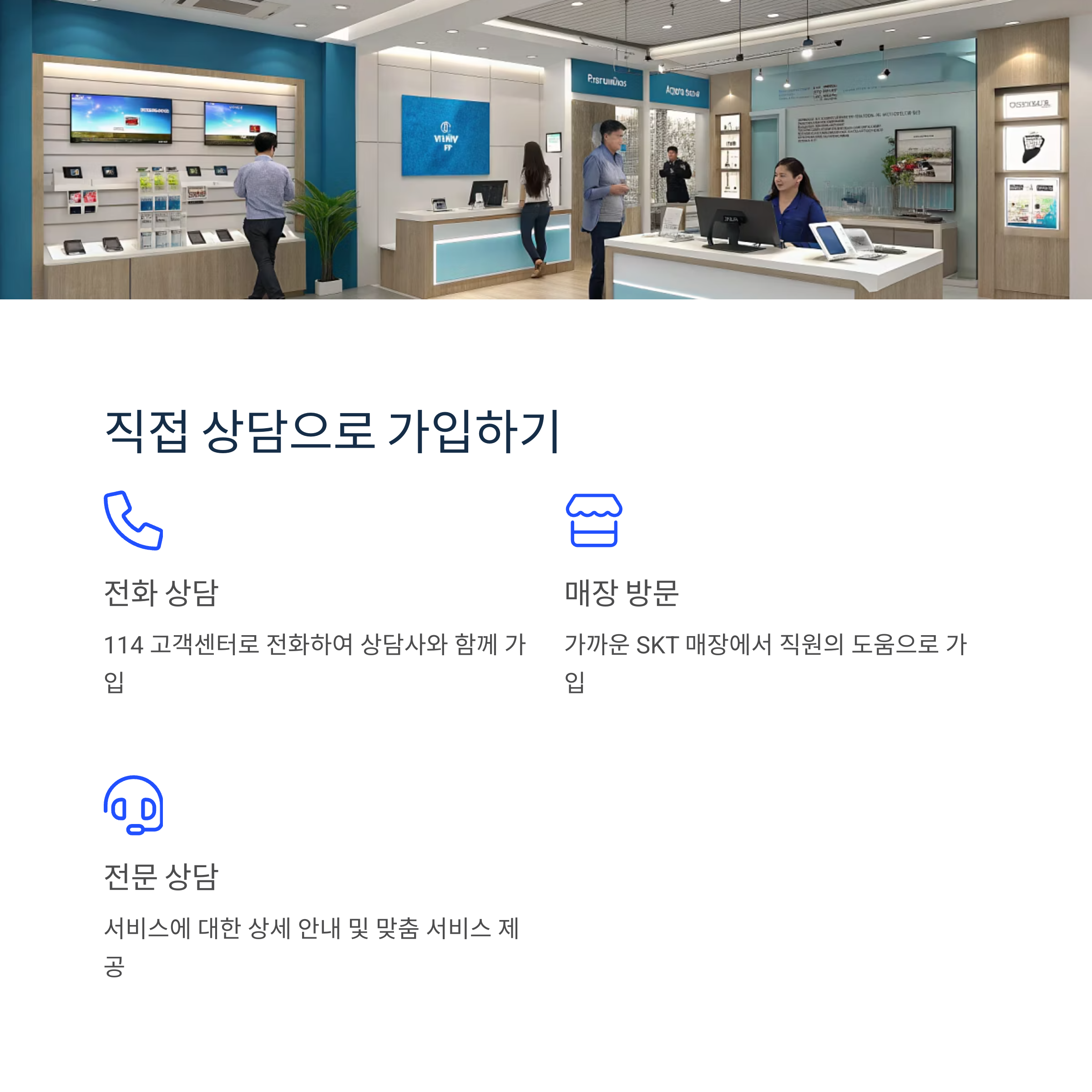 "전화로도, 매장에서 직접도. 방식은 다양하지만 가입은 간단해요 ☎️"